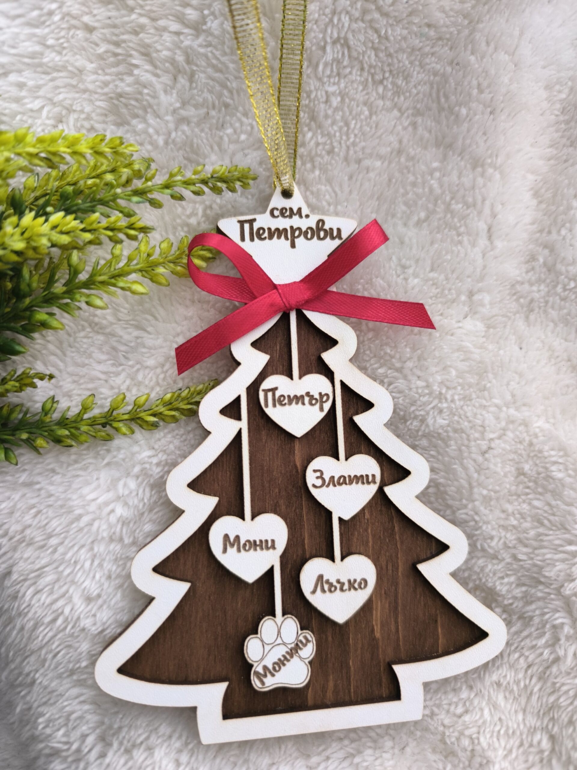 Моля, в текстовото поле изпишете имената, както и дали желаете да бъде с червена панделка или не.